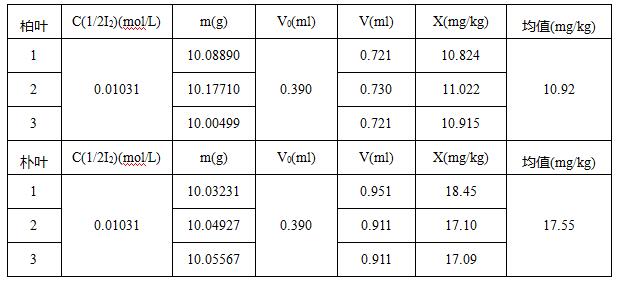 柏葉中平均二氧化硫含量為10.92mg/kg,樸葉中平均二氧化硫含量為17.55mg/kg。實(shí)驗(yàn)結(jié)果重復(fù)性良好,符合國標(biāo)的要求。用二氧化硫測定儀配合電位滴定儀檢測二氧化硫操作更加簡單,結(jié)果更準(zhǔn)確,還節(jié)省了大量的時(shí)間,提高了工作效率。