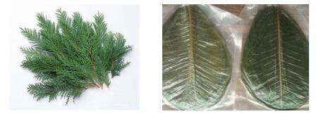 柏葉,植物柏樹葉子,主治吐血,鼻出血、痢血;樸葉是一種鄉(xiāng)土料理常用到的輔料,燒烤樸葉能散發(fā)獨(dú)特葉香,配以咸鮮的味噌及辛辣的蔥,香氣襲人,增加食欲。