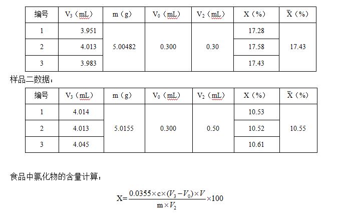 試樣經(jīng)酸化處理后,加入丙酮,用硝酸銀標準滴定溶液滴定試液中的氯化物。根據(jù)電位的“突躍”,確定滴定終點。以硝酸銀標準滴定溶液的消耗量,計算食品中的氯化物含量。