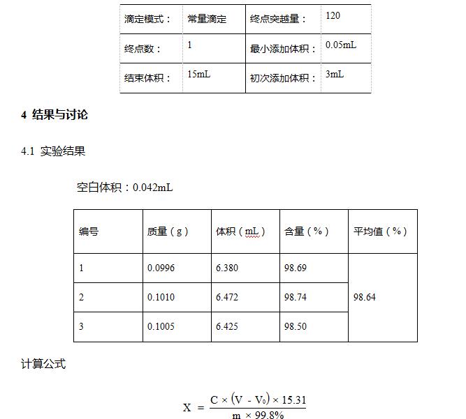 稱取0.1g樣品于滴定杯中,加入100mL醋酸溶劑,超聲約1min,待樣品完全溶解后,用高氯酸溶液滴定,并將滴定的結(jié)果用空白試驗校正。