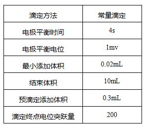測(cè)定方法: 準(zhǔn)確稱(chēng)取5g左右樣品,置于滴定杯中,加入冰醋酸-異辛烷混合溶液50mL溶解,攪拌均勻,向滴定杯中準(zhǔn)確加入0.5mL飽和碘化鉀溶液,開(kāi)動(dòng)攪拌器,在合適的攪拌速度下反應(yīng)60s,立即向滴定杯中加入40mL去離子水,插入電極和滴定頭,設(shè)置好參數(shù),用硫代硫酸鈉標(biāo)準(zhǔn)滴定液(0.01mol/L),以鉑復(fù)合電極為工作電極,在T960上進(jìn)行滴定至終點(diǎn)。
