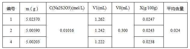 v0---空白試驗(yàn)消耗的硫代硫酸鈉標(biāo)準(zhǔn)溶液體積,單位為毫升(mL)