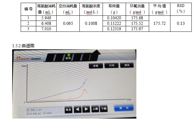 測試結果RSD值為0.13%,測定的環(huán)氧當量重復性良好。