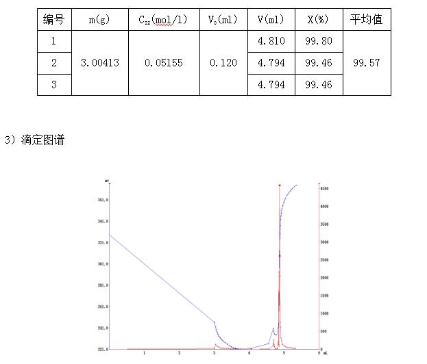 準(zhǔn)確稱取3g樣品-250ml容量瓶,移取10ml試液-70ml水,用碘標(biāo)準(zhǔn)溶液在電位滴定儀上滴定至終點,同時作空白試驗。