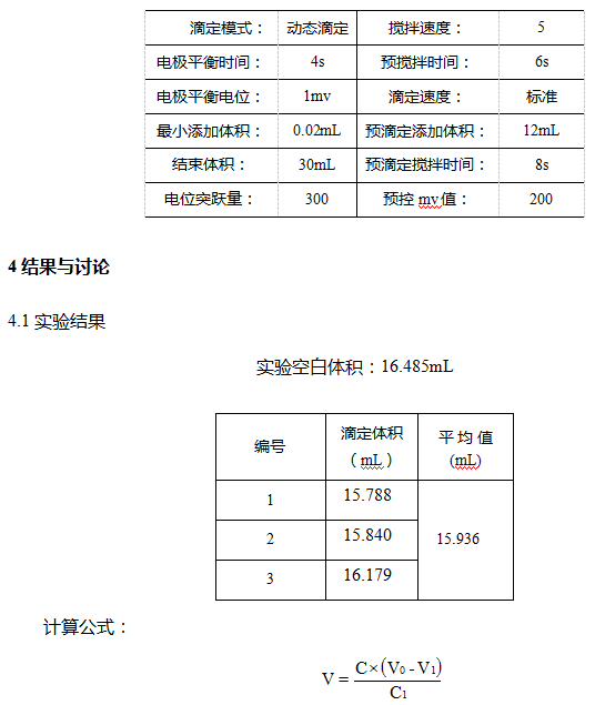 根據(jù)文獻要求,取平行測試結(jié)果的算術(shù)平均值為測定結(jié)果,用電位滴定法測定易氧化物含量,實驗重復性良好。