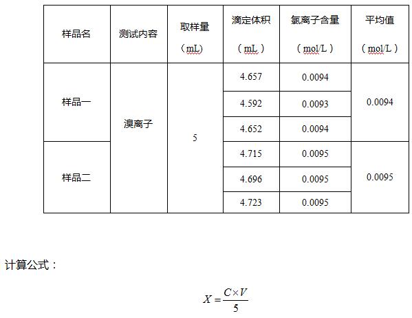X---樣品中溴離子含量,單位為摩爾每升(mol/L);