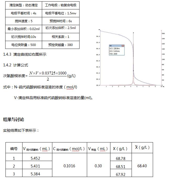 用電位滴定法測定次氯酸跟含量,操作簡單,結(jié)果準(zhǔn)確。