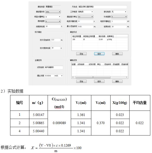 制備的油脂試樣溶解在異辛烷和冰乙酸中,試樣中過氧化物與碘化鉀反應生成碘,反應后用硫代硫酸鈉標準溶液滴定析出的碘,用電位滴定儀確定滴定終點。用過氧化物相當于碘的質(zhì)量質(zhì)量分數(shù)或1kg樣品中活性氧的毫摩爾數(shù)表示過氧化值的量。