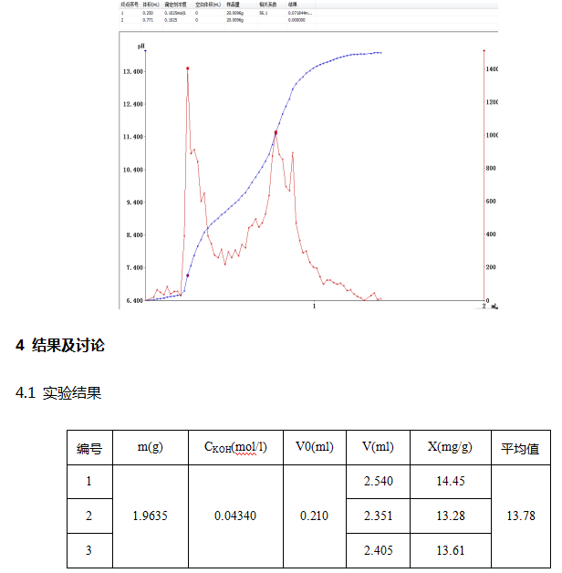 番茄紅素是植物中所含的一種天然色素。主要存在于茄科植物西紅柿的成熟果實(shí)中。酸價(jià),是對(duì)化合物(例如脂肪酸)或混合物中游離羧酸基團(tuán)數(shù)量的一個(gè)計(jì)量標(biāo)準(zhǔn)。在脂肪生產(chǎn)的條件下,酸價(jià)可作為水解程度的指標(biāo),在其保藏的條件下,則可作為酸敗的指標(biāo)。由于番茄紅素自身顏色的干擾,手工滴定時(shí)判斷終點(diǎn)比較困難,本文采用電位滴定法檢測(cè)番茄紅素的酸價(jià),具有操作簡(jiǎn)單,結(jié)果準(zhǔn)確等優(yōu)點(diǎn)。