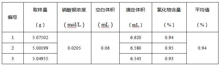 V0——空白試驗(yàn)時消耗的硝酸銀標(biāo)準(zhǔn)溶液的體積,mL
