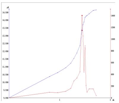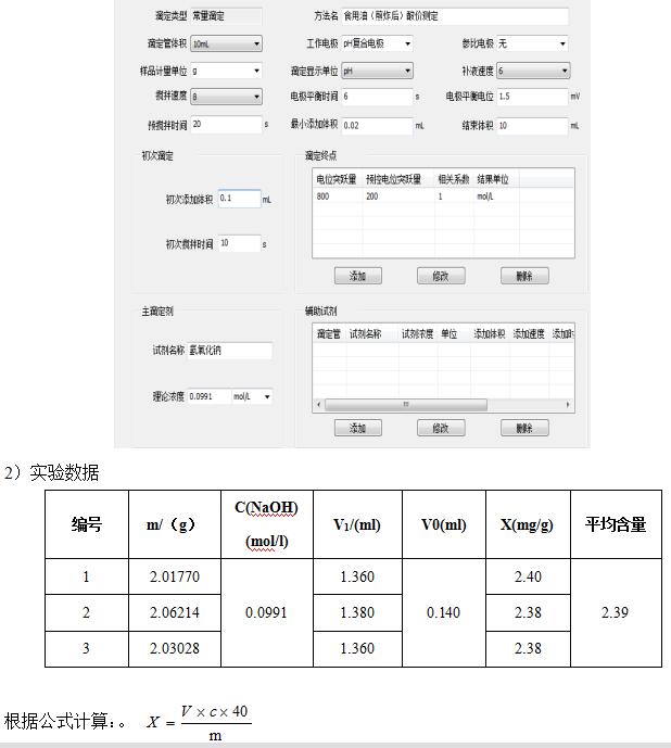 測定方法:準(zhǔn)確稱取2g左右樣品,置于滴定杯中,加入異丙醇-乙醚混合溶液60ml溶解,攪拌均勻,用氫氧化鈉標(biāo)準(zhǔn)滴定液(0.1mol/l),以pH非水電極為工作電極,在T960上進(jìn)行滴定至終點(diǎn)。