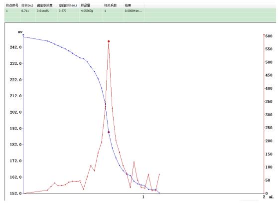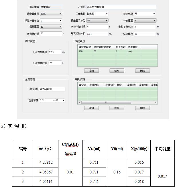 測定方法:準(zhǔn)確稱取4g左右樣品,置于滴定杯中,加入冰醋酸-異辛烷混合溶液50ml溶解,攪拌均勻,向滴定杯中準(zhǔn)確加入0.5ml飽和碘化鉀溶液,開動攪拌器,在合適的攪拌速度下反應(yīng)60s,立即向滴定杯中加入40ml去離子水,插入電極和滴定頭,設(shè)置好參數(shù),用硫代硫酸鈉標(biāo)準(zhǔn)滴定液(0.01mol/l),以鉑復(fù)合電極為工作電極,在T960上進(jìn)行滴定至終點。