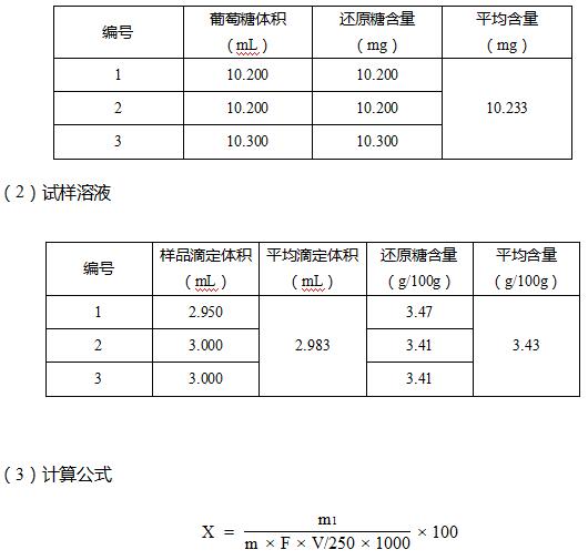 X --試樣中還原糖的含量(以葡萄糖糖計),單位為克每百克(g/100g);