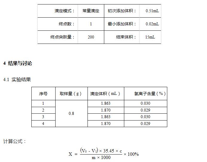 樣品中氯離子含量很低,直接滴定不易滴定,測(cè)試平行性較好。