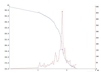 測定方法:根據(jù)不同樣品, 準確稱取5-10g樣品,置于滴定杯中,加入冰醋酸-異辛烷混合溶液50mL溶解,攪拌均勻,向滴定杯中準確加入0.5mL飽和碘化鉀溶液,開動攪拌器,在合適的攪拌速度下反應60s,立即向滴定杯中加入40mL去離子水,插入電極和滴定頭,設置好參數(shù),用硫代硫酸鈉標準滴定液(0.01mol/L),以鉑復合電極為工作電極,在T960上進行滴定至終點。