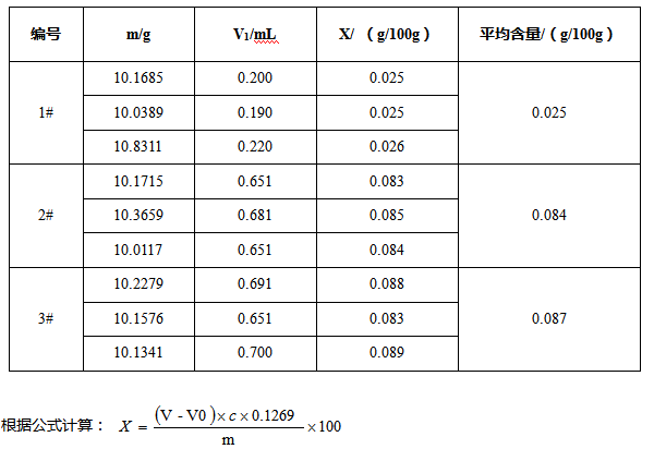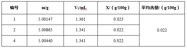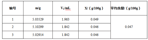 電位滴定檢測出來的結(jié)果平行性良好,符合國標的要求。