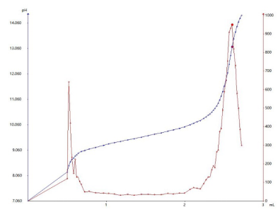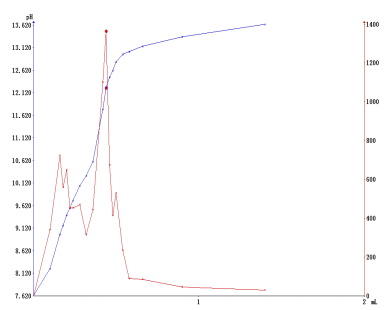 2、酸價(jià)滴定體積偏小時(shí)會(huì)導(dǎo)致圖形雜峰較多,終點(diǎn)不易判斷,建議加大稱樣量,充分?jǐn)嚢璐娢环€(wěn)定后滴定。