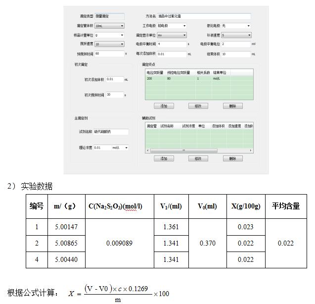 測定方法: 準(zhǔn)確稱取5g左右樣品,置于滴定杯中,加入冰醋酸-異辛烷混合溶液50ml溶解,攪拌均勻,向滴定杯中準(zhǔn)確加入0.5ml飽和碘化鉀溶液,開動攪拌器,在合適的攪拌速度下反應(yīng)60s,立即向滴定杯中加入40ml去離子水,插入電極和滴定頭,設(shè)置好參數(shù),用硫代硫酸鈉標(biāo)準(zhǔn)滴定液(0.01mol/l),以鉑復(fù)合電極為工作電極,在T960上進(jìn)行滴定至終點。