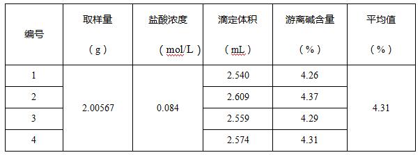 稱取試樣約8g(精確至0.001g)至400mL燒杯中,加入250mL煮沸并冷卻至室溫的水,在磁力攪拌器上攪拌10min,使其充分溶解,再轉(zhuǎn)移至2000mL容量瓶中,加水定容。打開電位滴定儀,校準(zhǔn)pH值。用移液管移取試液50mL置于滴定杯中,用鹽酸標(biāo)準(zhǔn)滴定溶液滴定,當(dāng)溶液pH值為9.0并且穩(wěn)定10s不變時(shí),即為滴定終點(diǎn),記錄消耗鹽酸標(biāo)準(zhǔn)滴定溶液的體積。
