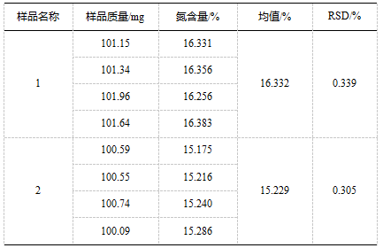 從實驗結(jié)果可以看出,使用D100杜馬斯定氮儀測試復(fù)混肥中的氮含量測試快速、結(jié)果準確,重復(fù)性符合標準。并且操作簡單便捷,可以作為常規(guī)測試方法。