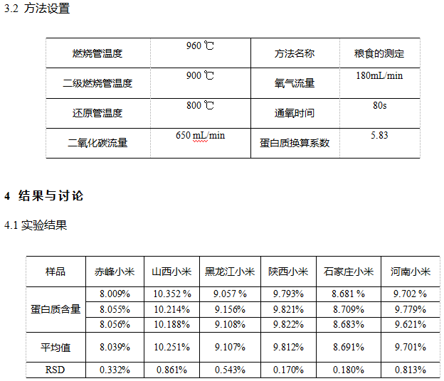 杜馬斯燃燒法測(cè)定小米中粗蛋白含量