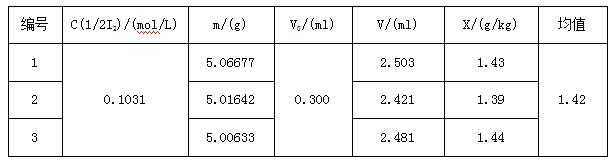 B--滴定試劑空白所用碘標(biāo)準(zhǔn)滴定溶液(0.01mol/L)的體積,單位為毫升(ml)