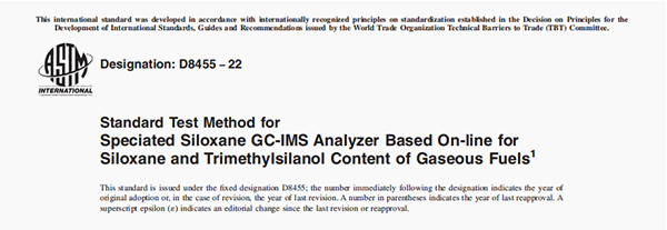ASTM標準《在線測定氣態(tài)燃料中硅氧烷和三甲基硅烷含量的GC-IMS分析儀標準試驗方法》,旨在提供使用GC-IMS在線分析硅氧烷的標準化啟動步驟、操作步驟和質(zhì)量保證實踐的步驟。