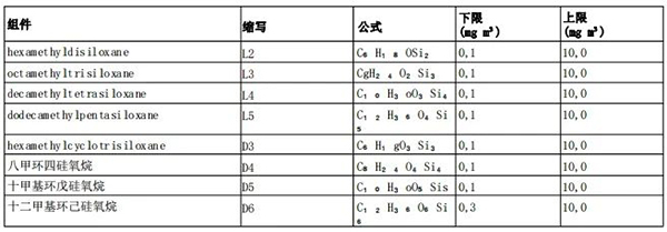 該方法適用于表1中規(guī)定的濃度范圍內(nèi)的硅氧烷。
