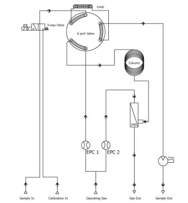 1.從工藝管道中提取具有代表性的氣體燃料樣品,并通過適當設(shè)計的取樣系統(tǒng)及時轉(zhuǎn)移到硅氧烷分析儀的入口。樣品基質(zhì)對硅氧烷含量的影響很小,可以忽略不計。將氣體從工藝管道或管道輸送到儀器的管路加熱到至少65℃,防止較重的硅氧烷氣體冷凝。分析儀樣品管路充滿已知體積的樣品氣體,然后將樣品管路中的分析物導入GC-IMS。