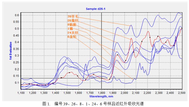 如上圖 1,不同種類的纖維對近紅外的吸收光譜有明顯的區(qū)別(要分辨譜圖的形狀和波峰的
