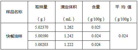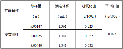 在食品安全國(guó)家標(biāo)準(zhǔn)《GB 5009.227-2016 食品中過氧化值的測(cè)定》中對(duì)于不同種類的食品的過氧化值測(cè)定方法都有明確的規(guī)定,一般油脂新鮮,其過氧化值不應(yīng)大于0.15%。本文按照國(guó)標(biāo)中的電位滴定法來(lái)測(cè)定食品的過氧化值,操作步驟簡(jiǎn)單、結(jié)果準(zhǔn)確。