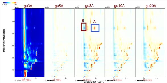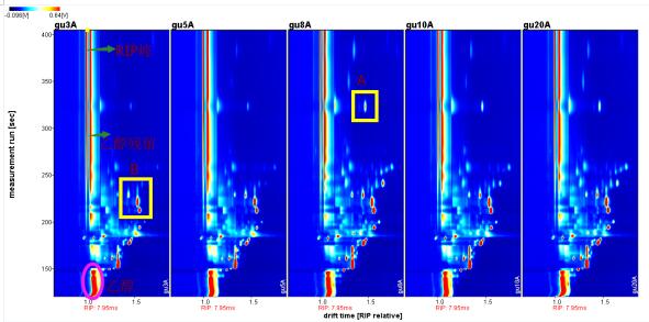 2.縱坐標為同一保留時間及漂移時間下的有機物的信號峰