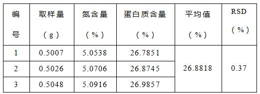 通過數(shù)據(jù)可知,利用全自動凱氏定氮法測定扁桃中的蛋白質(zhì)含量平行性良好,且具有操作簡單,安全性高,節(jié)省人力等優(yōu)點。