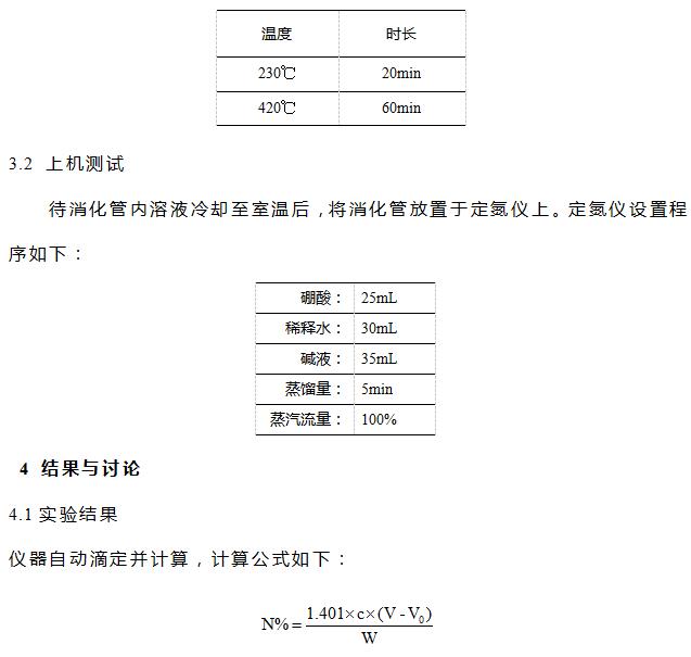 硫酸(分析純),硼酸(分析純),氧化鈉(分析純),溴甲酚綠-甲基紅混合指示劑,催化劑片(3g硫酸鉀和0.2g硫酸銅混合均勻壓片),0.1mol/L鹽酸標(biāo)準(zhǔn)滴定液。