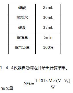 待消化管內(nèi)溶液冷卻至室溫后,將消化管放置于定氮儀上,開始蒸餾滴定。定氮儀設(shè)置程序如下: