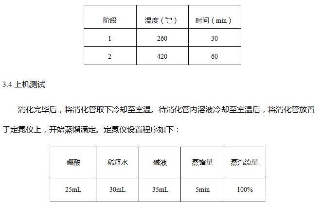 稱取上述制備好的樣品0.3g(精確至0.1mg),加一片催化劑片(或硫酸鉀3g與硫酸銅0.2g),再加硫酸10mL。同時(shí)做空白實(shí)驗(yàn)。