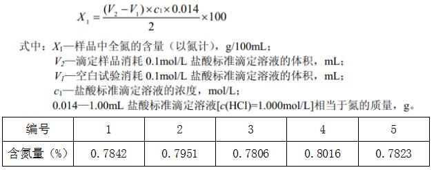 1.2.2取樣:吸取醬油樣品2.00mL于消化管中,每個消化管中再分別加入1片催化劑片,