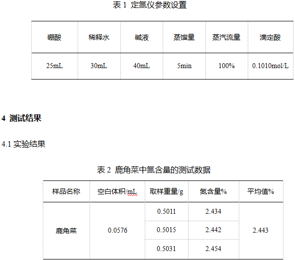 從實(shí)驗(yàn)結(jié)果可以看到,采用K1100F凱氏定氮儀可以準(zhǔn)確的檢測鹿角菜中的氮含量。