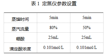 定氮儀參數(shù)設(shè)置如表。