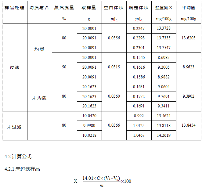過濾樣品必須經(jīng)過均質(zhì)處理,否則揮發(fā)性鹽基氮不能全部溶解在水中,測試結(jié)果偏低。