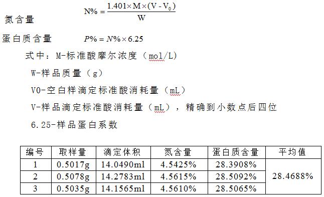 肉松中的有機(jī)態(tài)氮在濃硫酸和催化劑的共同作用下,轉(zhuǎn)化為氨態(tài)氮。加堿蒸餾后,用硼酸吸收后,再以鹽酸或硫酸標(biāo)準(zhǔn)滴定液進(jìn)行滴定。