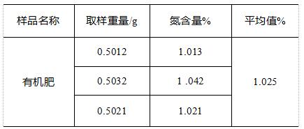 測(cè)試結(jié)果顯示本次測(cè)試有機(jī)肥的氮含量均值為1.025%,且測(cè)定結(jié)果的允許差小于0.06%,符合《NY 525-2012有機(jī)肥料》的要求。
