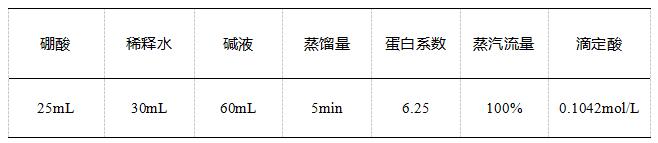 硫酸(分析純),20g/L硼酸水溶液,溴甲酚綠-甲基紅混合指示劑,40%氫氧化鈉水溶液,0.1mol/L硫酸標(biāo)準(zhǔn)滴定液,混合催化劑:分析純無水硫酸鉀10g、分析純無水硫酸銅0.5g。