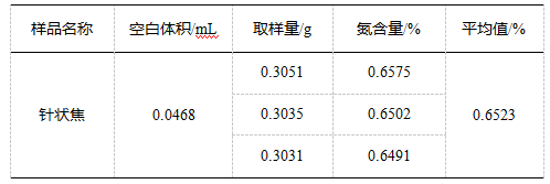 針狀焦是制造高功率電極(HP)和超高功率電極(UHP)的主要原料,電極的性能在很大程度上取決于針狀焦的質(zhì)量。其中氮含量也是其性能指標(biāo)之一,對其性能的影響十分重要。本實驗參照國標(biāo)中方法,對針狀焦中的氮含量進(jìn)行測定。