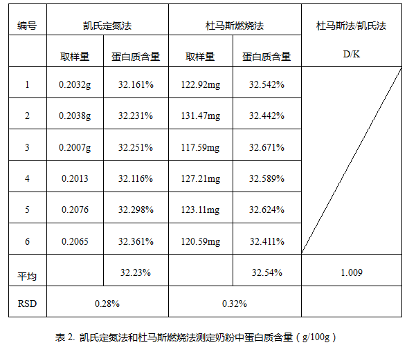 凱氏定氮法和杜馬斯燃燒法測定奶粉中蛋白質含量的比較
