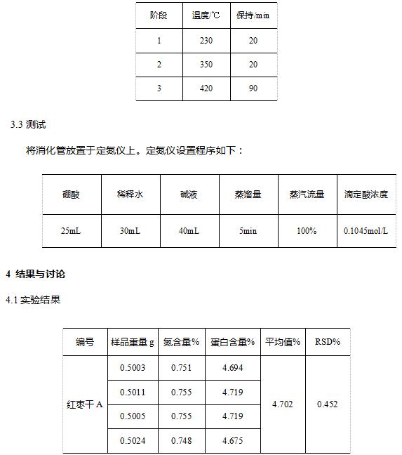 凱氏定氮儀測(cè)定紅棗干中粗蛋白的含量