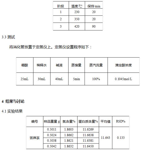 凱氏定氮儀測定苦蕎茶中粗蛋白的含量