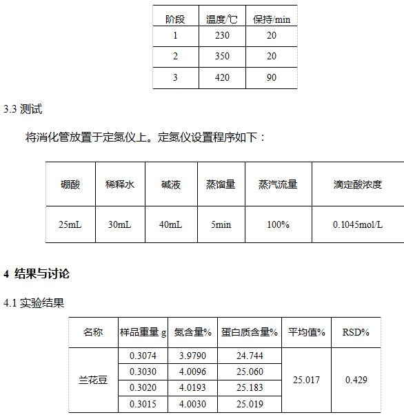 凱氏定氮儀測(cè)定蘭花豆中粗蛋白的含量