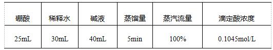 硫酸(分析純),20g/L硼酸溶液,溴甲酚綠-甲基紅混合指示劑,40%氫氧化鈉,混合催化劑壓片(3gK2SO4、0.2gCuSO4),0.1mol/L硫酸標(biāo)準(zhǔn)滴定液。