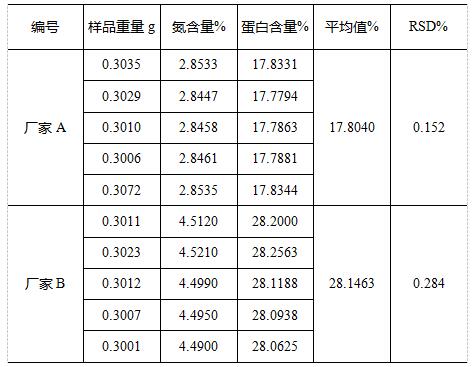 使用K1100F全自動凱氏定氮儀測定的數(shù)據(jù)重復(fù)性符合國標(biāo)《GB/T 6432-94 飼料中粗蛋白的測定方法》要求的兩次獨(dú)立測定結(jié)果與其算術(shù)平均值的絕對差值與該平均值的比值不超過1%。